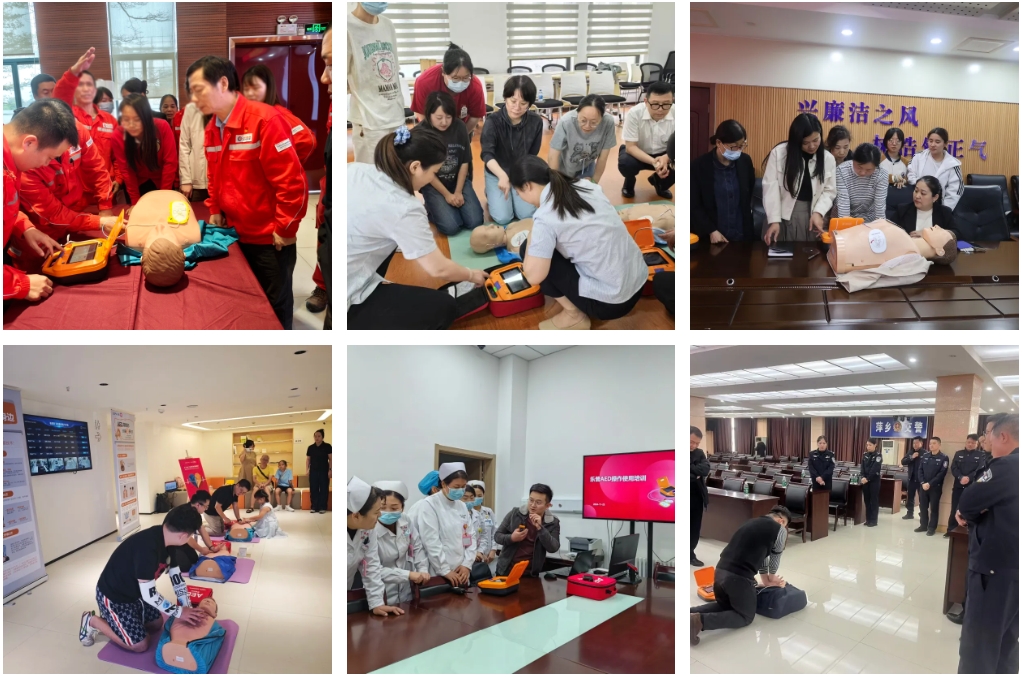 “有设备,更要会用人”。乐普在部署AED时,通常会提供生动的线下培训,内容包括AED的原理和使用方法、心脏骤停的识别、心肺复苏技能等。通过模拟急救演练和案例分析,员工们不仅加深了对急救知识的理解,还提高了应对紧急情况的实战能力。