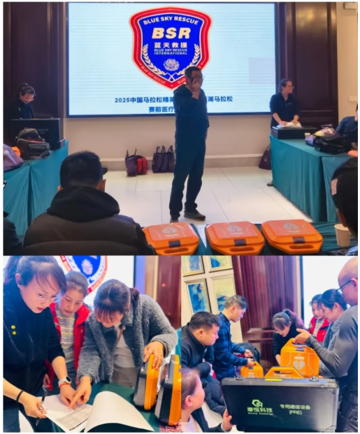 除了硬件设施的全面覆盖,乐普更注重 “软硬件协同” 的保障体系建设。赛前,乐普 AED 全力护航赛事医疗急救保障工作,面向赛事志愿者、裁判及工作人员开展多场 AED 实操与应急急救技能专项培训,筑牢赛事安全防线。培训内容涵盖心脏骤停识别、心肺复苏(CPR)操作、AED 使用流程等核心技能,通过理论讲解、实操演练与模拟考核相结合的方式,让每一位参训人员都能熟练掌握急救技巧。